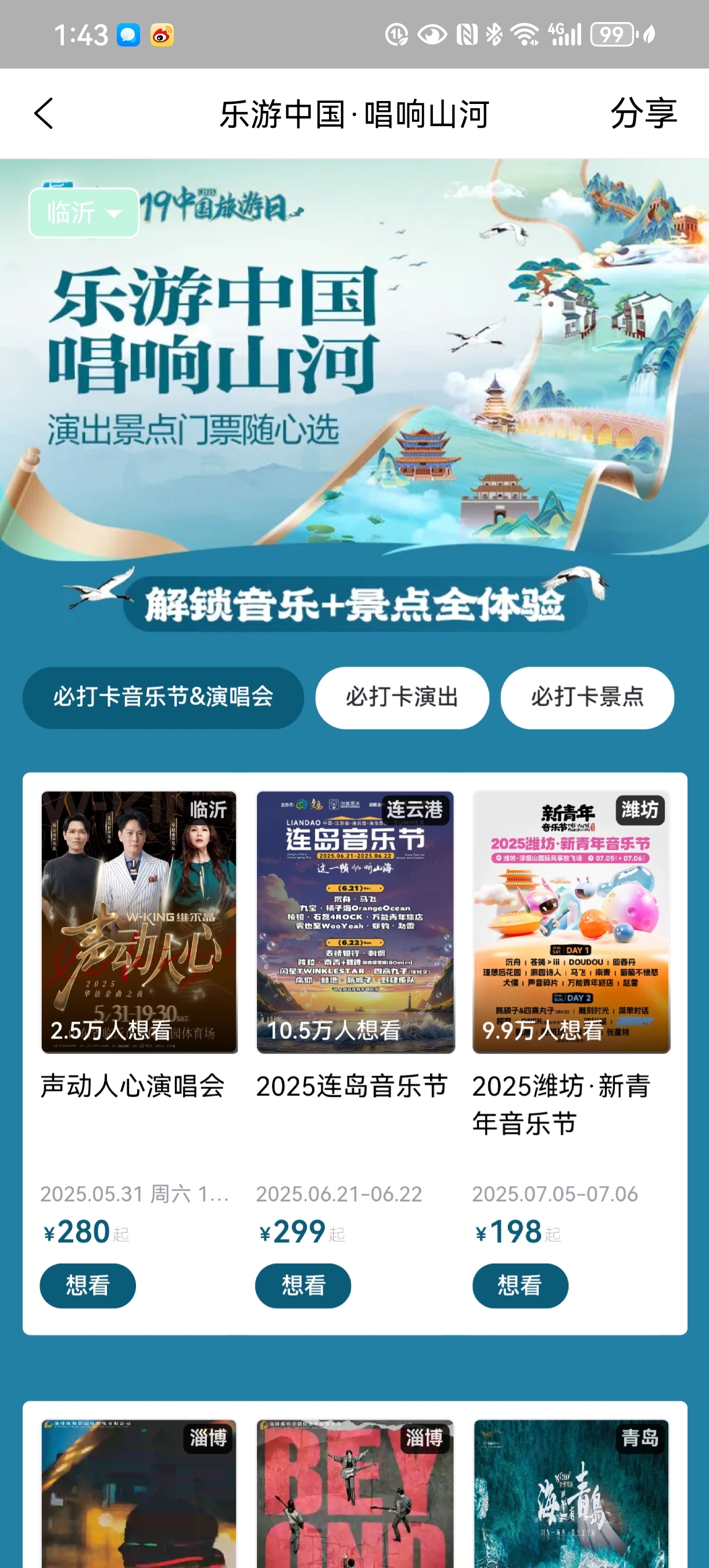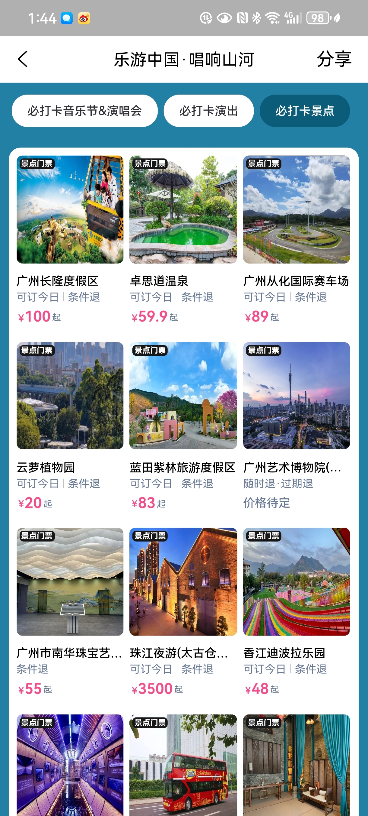 可以实现演出、景点一站式购票。